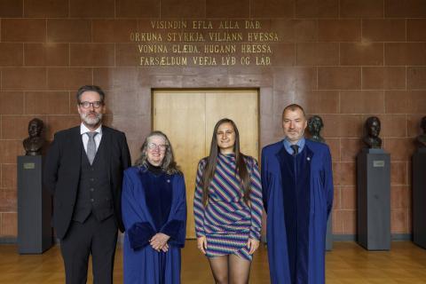 Andmælendur við vörnina voru Gunilla Hermansson, prófessor við háskólann í Gautaborg, og Torben Jelsbak, dósent við Kaupmannahafnarháskóla. Doktorsritgerðin var unnin undir leiðsögn Benedikts Hjartarsonar, prófessors í menningarfræði við Háskóla Íslands, en auk hans sátu í doktorsnefnd þau Jesper Olsson, prófessor við Linköping háskólann í Svíþjóð og Tania Ørum, dósent emerita við Kaupmannahafnarháskóla.